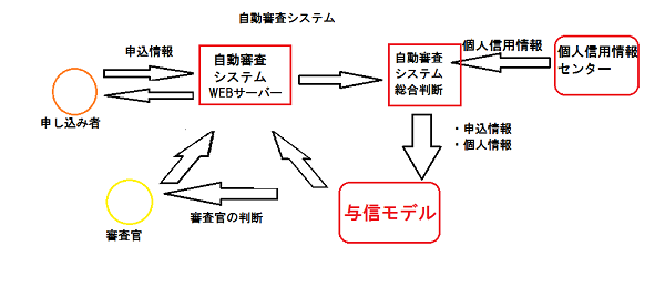 次に申し込み者の情報がすべて与信サーバーに集められて、与信モデルと照合をします。